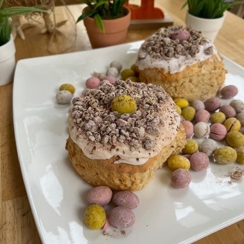 ‘Easter’ Our famous Poplars scone filled with chocolate chips and topped with frosting and Mini Eggs! Could this be the perfect way to celebrate the end of your Lenten fast?