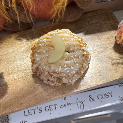 Our signature Poplars scone filled with apple & caramel and topped off with icing, toffee sauce and caramelised apple. A perfect treat for Bonfire Night along with one of our sensational seasonal hot drinks available from Little Beans coffee shop!